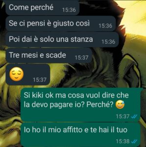 A un certo punto però, Chiara se ne esce con una richiesta. Un messaggio, poche parole, tante pretese che si sono poi trasformate in un’assurdità bella e buona. Ancora oggi mi chiedo se non me lo sono sognato.”