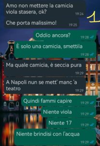“Quando ti fidanzi pensi di dover litigare per le solite cose: tornare tardi, l’amica di cui è gelosa, serate con gli amici. Io invece no. Io ho avuto la sfortuna — letteralmente — di innamorarmi di una napoletana convinta che il mondo sia un grande manuale di superstizioni.