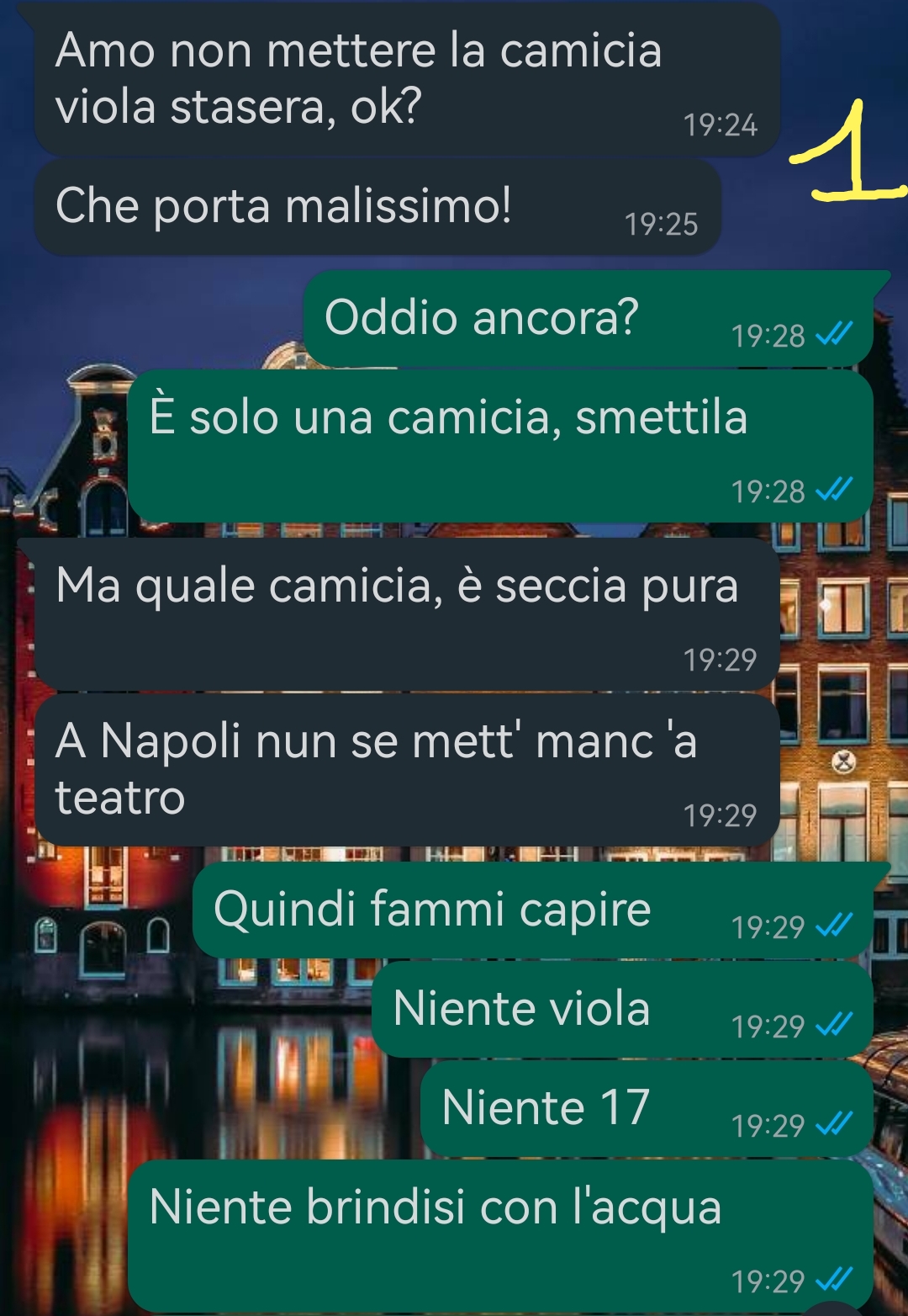 Con lei ogni giorno era un quiz: “posso mettere la camicia viola?” → “No, porta male.” “Posso brindare con l’acqua?” → “Vuoi far morire qualcuno?!” “Ho fatto cadere un bicchiere…” → “È un segno, preparati.”