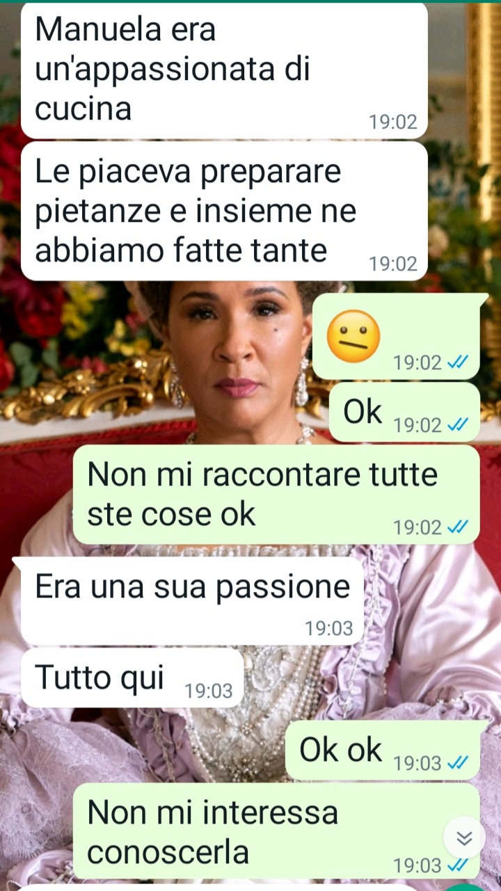 Lui ha ancora il numero di lei nel cellulare. Ha ancora conversazioni di anni fa salvate su WhatsApp. L’ho visto per puro caso, perché lui mi dà il suo cellulare quando guida per esempio per chiamare sua madre e scorrendo la rubrica ho visto il suo nome. Insomma.