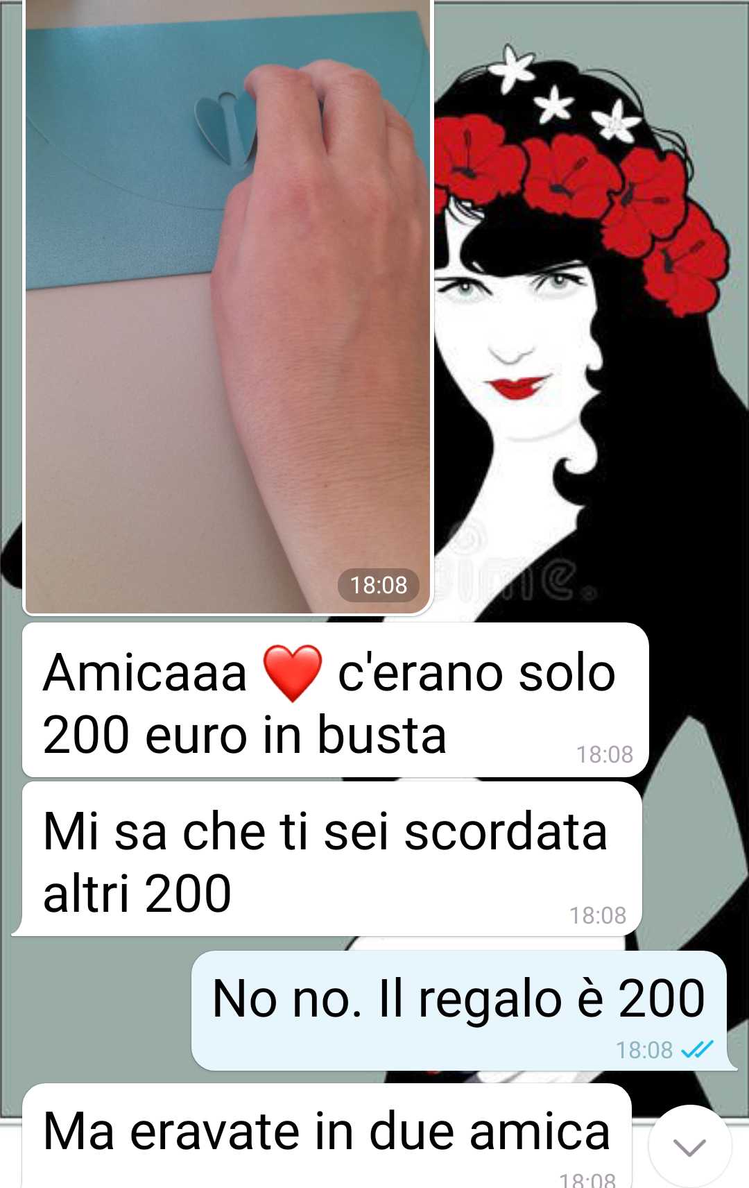 “Una mia amica pretende che aggiunga 200 euro al regalo in busta che le ho fatto. Il regalo non è un’offerta libera o sbaglio??