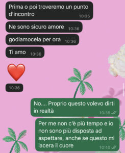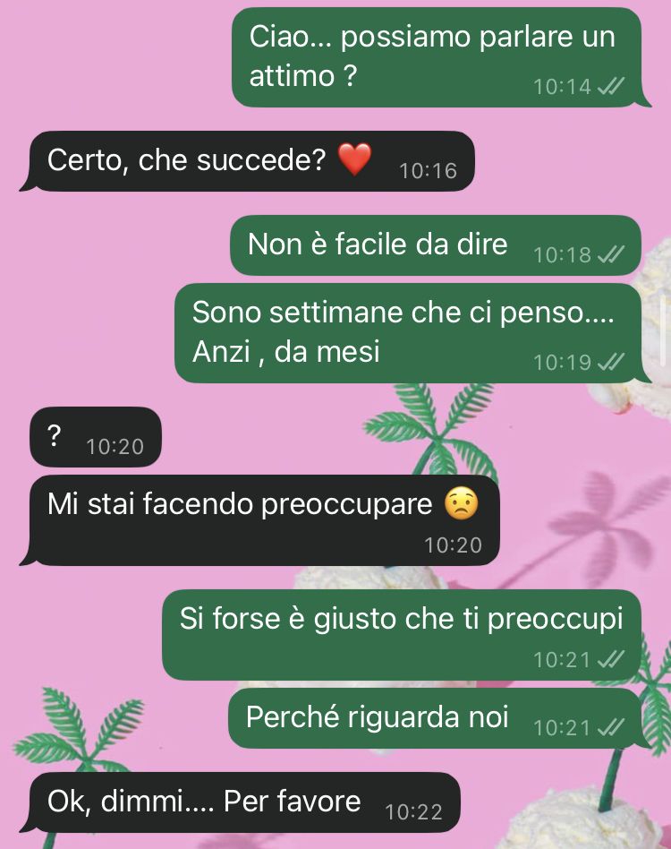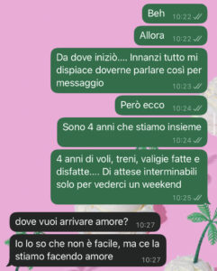 Mi fa male il cuore. Vi lascio leggere la nostra ultima conversazione… mi dite cosa ne pensate per favore? Ho sbagliato?