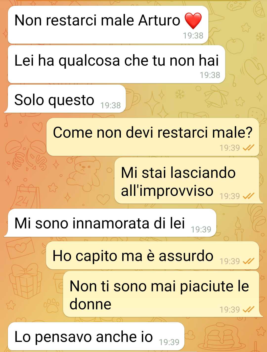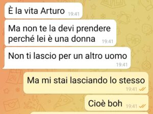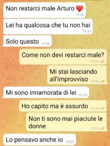 “Buongiorno, mi chiamo Arturo. La mia ragazza mi ha lasciato per mettersi con una sua amica. Lei dice che non è tradimento. Io lascio la parola a voi.