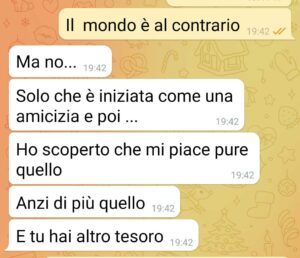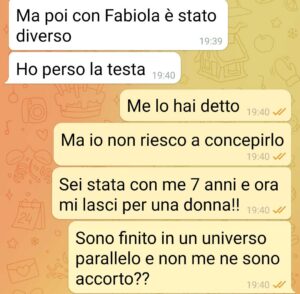 lei insiste e insiste e quindi sono qui a chiedere a voi.. siamo stati insieme per 7 anni, 7 anni della mia vita. in cui mi ero messo in gioco, in cui ho voluto ricominciare dopo una storia che era finita malissimo. Ho dovuto ricominciare a fidarmi, un passo alla volta, sempre piano, sempre con lei, pensando di avere trovato in lei la donna della mia vita, o quasi e lasciandomi andare all’amore e alla generosità… ma quanto cretino sono stato… ora non so come fare a riavere una cosa preziosa che per me rappresenta il mio cuore. .. chiedo aiuto a voi perché farò leggere questa chat alla mia ex”
