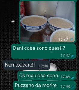 “Un saluto a tutta la community di Spunteblu, piacere mi chiamo Giovanni e ho bisogno di un vostro parere più sincero perché sono seriamente preoccupato. Io vi faccio leggere questi messaggi e poi alla fine voglio sapere la vostra opinione per capire se coincide con la mia, okay? Mi raccomando, per favore, perché non mi è mai capitata una cosa così folle.. La mia compagna Daniela nega tutto, ma io sono sicuro che mi sta nascondendo la verità. Non vi sto a dire troppe cose, ma in sintesi ieri torno a casa da lavoro, apro il frigo per prendere il latte da mettere nel caffè e sento un odore che dire nauseante è dire poco. Vedo che ci sono delle ciotole con dentro qualcosa dal colore non troppo invitante e l’odore arriva proprio da lì. Daniela non c’era ma dovevo scoprire perché tenesse in frigo quella robaccia e soprattutto cosa fosse. Solo che io mi aspettavo una risposta perlomeno logica, invece nulla di quello che mi ha detto aveva senso! Lei lo ha fatto di proposito, lo so! Lo ha fatto apposta, ne sono sicuro…”