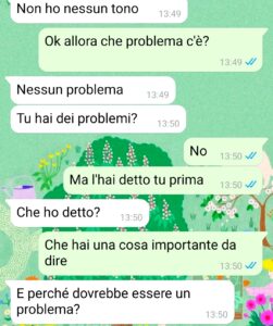 “Ciao a tutti, il mio nome è Dalila e ringrazio Spunteblu per avermi dato l’occasione di poter parlare dell’amicizia, in particolare i migliori amici, o almeno quelli che tu consideri tali e poi si rivelano tutt’altro. Infatti io ho 28 anni e da sempre sono amica di due persone, Desiree e Valerio. Li conosco da più di dieci anni perché eravamo compagni sin dal primo anni di liceo e siamo sempre rimasti uniti e insieme. Anche quando tutti gli altri compagni li abbiamo persi di vista all’università e nonostante ognuno di noi abbia intrapreso un percorso di studi totalmente differente, non è cambiato niente tra noi. Almeno fino a ora. Infatti i due si sono messi insieme.