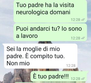 Sono sposata con un uomo in seconde nozze sue. Lui aveva già una figlia, l’unica, a cui ha dato tutto, preoccupandosi che tutto fosse in ordine, intestandole case, e sistemandola. Ora lei se ne frega di suo padre ammalato.