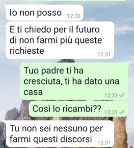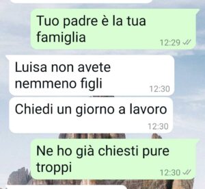 Sua figlia non si sta comportando da brava figlia e io vi invio questa chat un po’ per amarezzA e un po’ per sfogo. Spero mi pubblicate.”