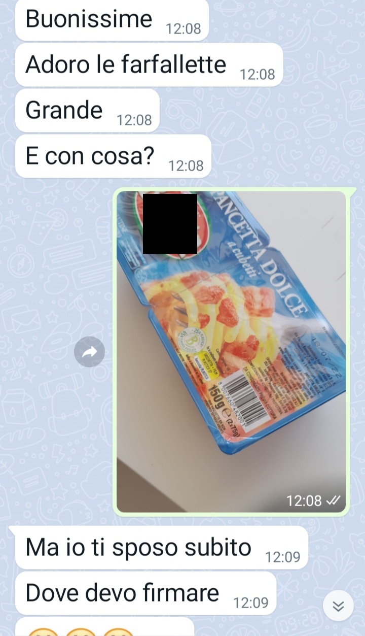 Io e lui conviviamo da pochissimo. Sono le prime settimane. Io sono un disastro in cucina e lo so. Per questo in questi giorni abbiamo quasi sempre mangiato cibo da asporto, meno male che esiste. Abbiamo fatto la spesa e io non ho notato nulla di strano, anche se lui dice che avrei dovuto. Non stiamo insieme da molto e tante cose di lui ancora non le so. Lui dice invece che tante cose me le ha dette. Io non so cosa pensare. Posso solo chiedere scusa perché se lui mi aveva già detto questa cosa importante e io l’ho dimenticata non posso che chiedere perdono.