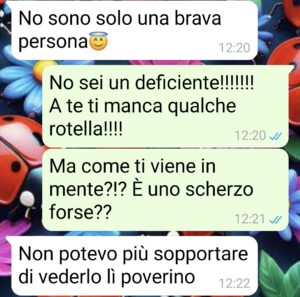 Cinzia ci manda questa chat tra lei e il marito Gianni. Loro sono sposati da tempo, hanno una figlia e una casa grande. Sono partner nella vita e si conoscono come le loro tasche, ma evidentemente qualcosa di Gianni, a Cinzia, è sfuggito. Forse Gianni è un po’ troppo empatico? Forse un po’ irresponsabile? O forse è Cinzia ad essere dalla parte sbagliata?