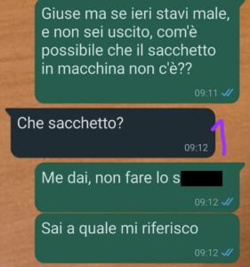 “Non avrei mai dovuto guardare sotto quel sedile. Cercavo solo di recuperare una monetina, niente di più. E invece trovo un sacchetto,ovviamente lo apro, e dentro c’è un completino… pizzo rosso, giarrettiera glitterata, roba che compri solo se hai in mente una notte precisa, mi spiego e mi è pure partita l’immaginazione. “Sta organizzando qualcosa per me che carino”, ho pensato.