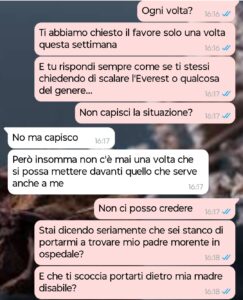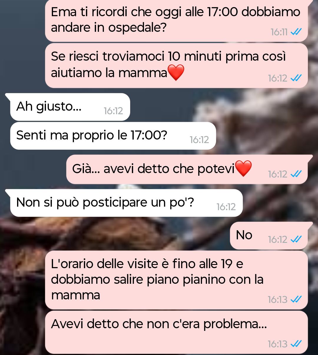 Quella che leggerete è una conversazione che ancora adesso, rileggendola, mi lascia senza parole. Non tanto per quello che è stato detto, ma per l’assenza totale di empatia, di umanità, di amore.