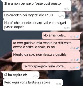 Da un messaggio apparentemente innocuo, ho cominciato a intravedere qualcosa. O meglio, a non vedere più nulla. Nessuna presenza, nessun supporto. Solo scuse, sbuffi, sarcasmo e… calcetto. Sì, calcetto.