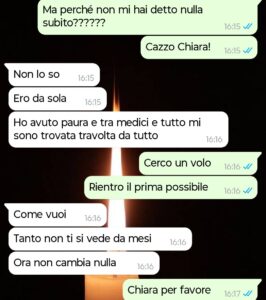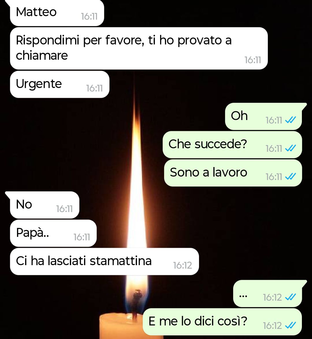 Ora che è passato qualche tempo, voglio dire a chiunque che, come me, si trova lontano da casa o ha rapporti complicati con la famiglia a causa di vecchi dissapori…perdonatevi a vicenda. Ricucite i pezzi, parlate anche se fa male. Non lasciate che vadano perduti giorni, ore, momenti che un giorno saranno preziosi e irrecuperabili. Il tempo non torna indietro. Papà non tornerà. E credo che anche mia sorella sia ormai una persona che non conosco più.”