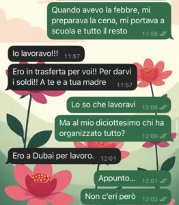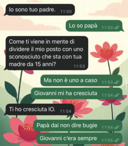 Mi sento a pezzi. Vi lascio gli screen del nostro litigio… ditemi voi cosa ne pensate per favore. Cosa dovrei fare??? Come si fa a restare fedeli a se stesse quando le aspettative degli altri sono così cariche di emozione, orgoglio, passato?