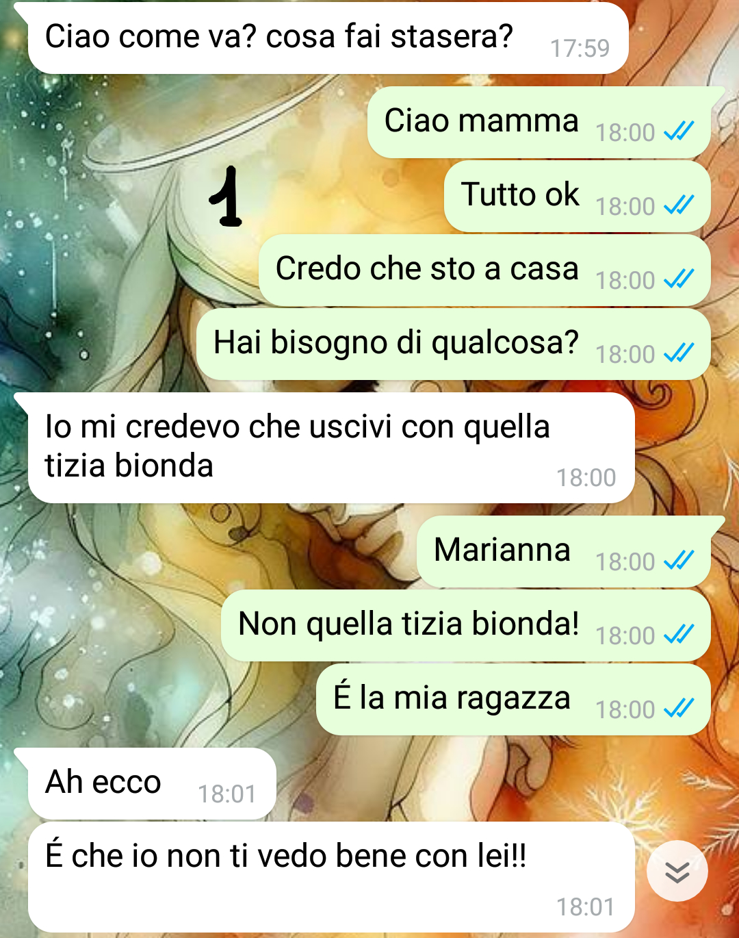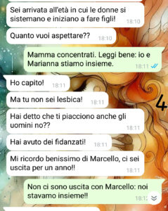 “Care SpunteBlu, my incredible mamma… allora io mi chiamo Jolanda e ho un grosso problema con mia mamma! Dovete sapere che mia mamma mi ha avuto prestissimo: a 19 anni. Per lei avere figli e mettere su famiglia – in una parola “sistemarsi”!! – è sempre stata una priorità, un punto fisso della vita: questo concetto mi è stato ripetuto all’infinito sin da quando ho memoria. Oggi ho 27, non sono sposata e non ho figli (a dire il vero non so neanche se li voglio!!), e mia mamma è disperata al solo pensiero che la zitellaggine mi aspetti di qui a breve! A complicare le cose c’è il fatto che io non sono single: ho una compagna, Marianna, noi stiamo insieme da un anno. Quando ho fatto coming out con la mia famiglia e ho detto di essere bisessuale devo dire che mia mamma è stata quella che l’ha presa meglio: per lei la mia bisessualità significa semplicemente che mi piacciono anche le donne.. ma certamente mi sposerò con uomo!! Di conseguenza la cosa non le ha creato problemi perché, appunto, per lei l’importante è che io mi sposi e faccia figli! Ovviamente però a lei Marianna non piace per nulla, perché la sua esistenza mi impedisce di cercare un uomo per “sistemarmi”…”