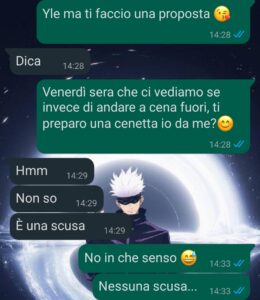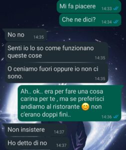 “Care SpunteBlu, questa ve la devo raccontare… Avete presente quando le ragazze vi scaricano nelle maniere più creative e assurde possibili? Secondo me, a me è successo con Ylenia… Conosco Ylenia a una serata mentre ero a ballare con amici, ci frequentiamo per un mese, tra uscite al ristorante, andiamo a fare delle attività insieme, siamo andati nei musei ecc.. Abbiamo fatto delle cose carine insieme, non il solito caffè al bar, insomma.. Venerdì sera ci dovevamo vedere per andare a mangiare fuori, ma io ho pensato di fare una cosa ancora più carina per lei… Invece di andare al ristorante, che è più formale e impersonale, ho pensato di preparare un menù e invitarla a cena a casa mia. Cucinare per qualcuno è una cosa molto intima, e pensavo le avrebbe fatto piacere questa piccola coccola, invece… ragazzi… è successo l’inverosimile. Mi ha accusato di avere doppi fini e che la mia fosse una scusa per “provarci”, ma Secondo me tutta la sua successiva indignazione e quello che ha detto sono state tutte scuse!! Non la mia… Che pensate voi? Grazie.”