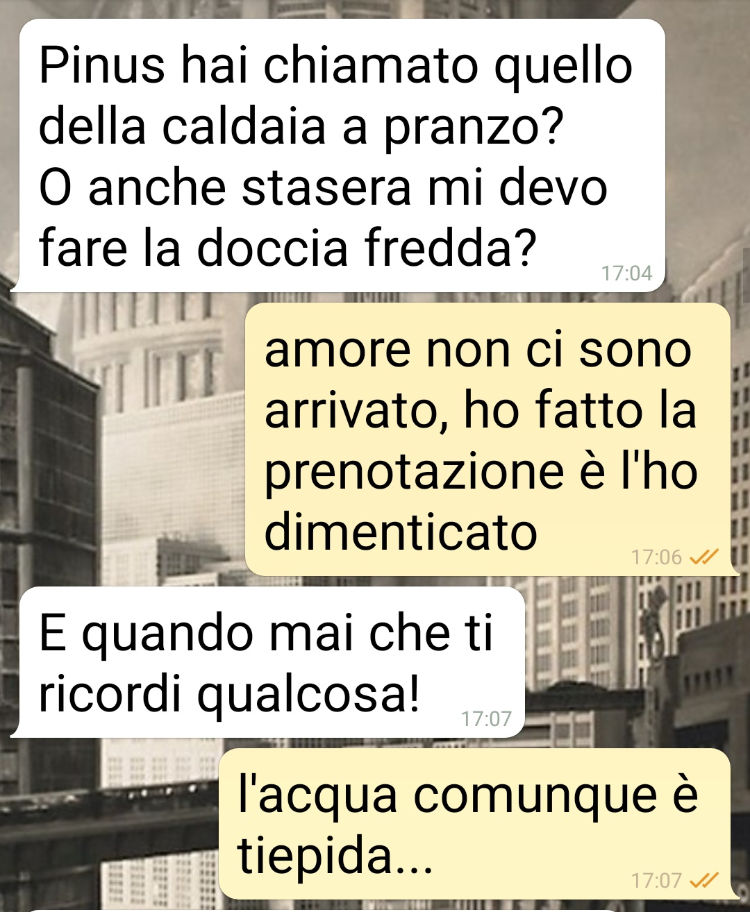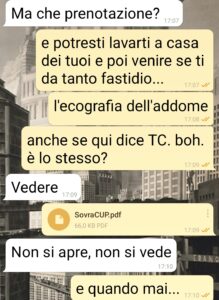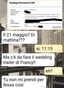 “Io sono Giuseppe, e dopo mesi di problemi vari all’addome mi sono finalmente convinto ad effettuare un esame. L’ho prenotato, tramite CUP, il 24 aprile. E nemmeno cinque ore dopo questa prenotazione è diventata un problema. E scoperchiato per caso. Ma un problema di quelli idioti, che non sarebbe un problema per nessuno penso. Solo per quella scriteriata della mia fidanzata. Si è infatti messa a fare la folle perché a suo dire quel video dell’amica che si sposa ha la precedenza sulla mia salute. E vedrete da voi che argomenti che usa, che pretese avanza e che soluzioni propone. E io dovrei subire passivo? Cioè devo davvero sottostare a questo ricatto? E non mi dite lasciala e bla bla bla… troppo facile da fuori. Sono già 10 giorni che mi sta ghostando…”