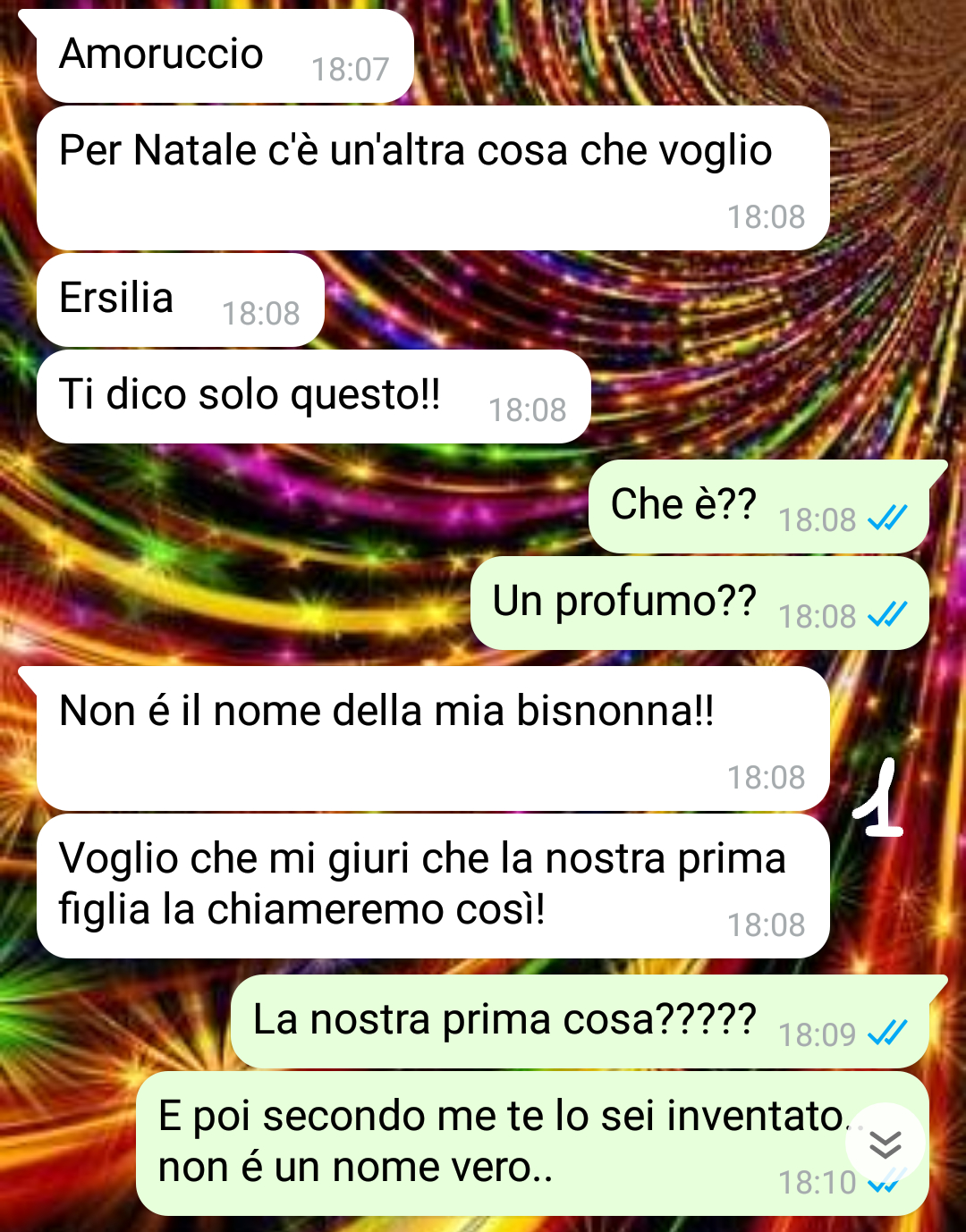 Poi io non so perché ma Jessica ha una vera mania della famiglia, del fare le cose come fanno loro della sua famiglia, della tradizione.. e appunto qui si torna al regalo di Natale! Jessica mi ha detto oggi che per Natale vuole anche un’altra cosa..”