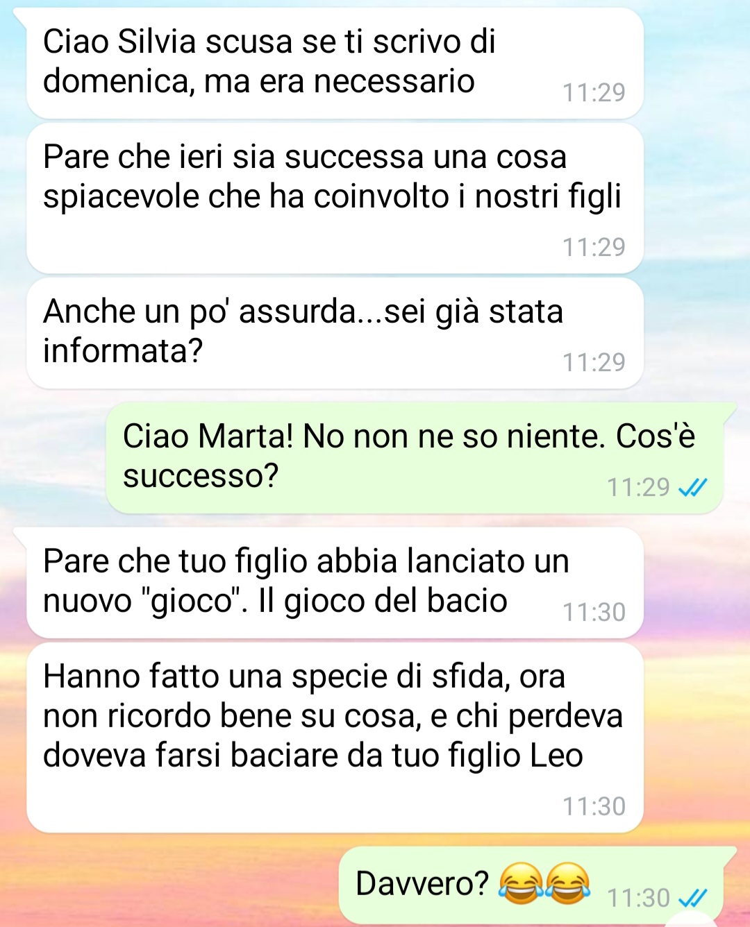 “Essere madre è un mestiere che non finisce mai. Ti illudono che i figli, da un giorno all’altro, diventeranno più semplici da gestire, ma non è vero, non accade mai. Cambiano le fasi, cambiano le forme, ma le preoccupazioni restano. E, come se non bastasse, il vero problema è che non devi gestire solo loro, devi gestire anche le altre madri. A volte sono peggio dei figli stessi. Sempre pronte a giudicare, a puntare il dito, a spiegarti come dovresti educare, cosa sbagli, cosa dovresti fare diversamente. È un continuo equilibrio tra diplomazia e istinto di sopravvivenza. Perché ormai, e capirete perché, la gente non sta bene, vive di polemiche, di manie, di drammi inutili. E ti ritrovi coinvolta in discussioni che non avresti mai voluto affrontare, situazioni surreali che ti cadono addosso quando hai già mille pensieri. Io cerco di mantenere la calma, davvero, ma non sempre è facile. E quello che è successo stavolta mi ha lasciata senza parole. Pensavo di averle viste tutte, e invece no. Una domenica mattina vengo contatta da Marta, un’amica di lunga data, per un problema, a suo dire, che coinvolgeva i nostri figli.”