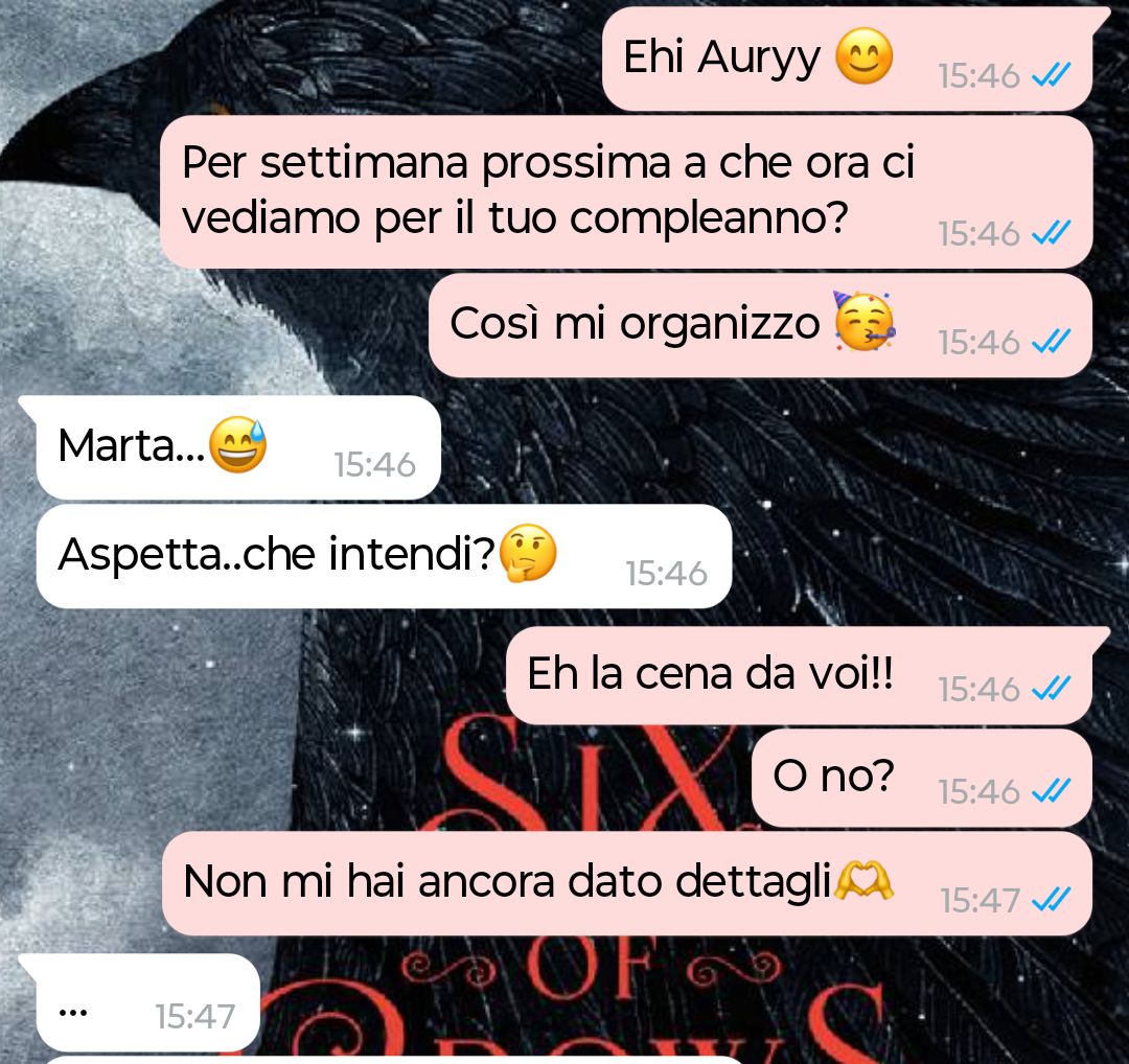 E invece eccomi qui. Tutto è iniziato per una cosa banalissima: volevo solo chiedere a Aurora a che ora trovarsi per il suo compleanno. Una cena di famiglia, come ogni anno.