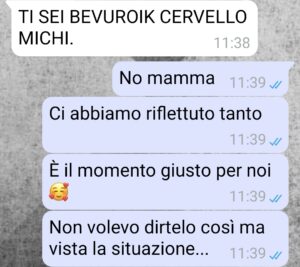 Mi fa male dovervi dire che nel giorno in cui mi sento più maturo e pronto ad affrontare la vita con coraggio, mi sento anche più solo che mai. Michele..”
