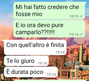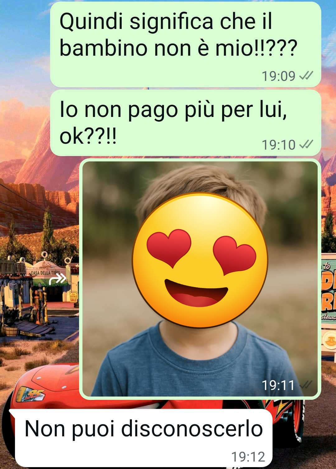 non voglio più stare con mia moglie e non voglio più essere padre perché padre effettivamente non lo sono. Voglio disconoscere il bambino!!! Non voglio lasciare le mie cose a lui!! Non voglio più pagare per lui ca**!!