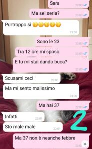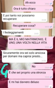 Ho pensato immediatamente a uno scherzo. Classica burla prima delle nozze. E invece no ragazzi, invece era tutto vero. La mia migliore amica Sara mi ha dato buca il giorno prima del matrimonio, la mia testimone di nozze mi ha abbandonato per un 37.0 scritto sul termometro. E voi penserete: “Si sarà scusata tantissimo, avrà chiesto perdono in ginocchio, avrà avuto altri sintomi”. No. Nessuna di queste cose. Nessuna. Il nulla assoluto. Non riesco a capire come un’amica possa fare una cosa del genere e dopo quella litigata non ci siamo più sentite. La cosa mi ha spezzato davvero il cuore….”