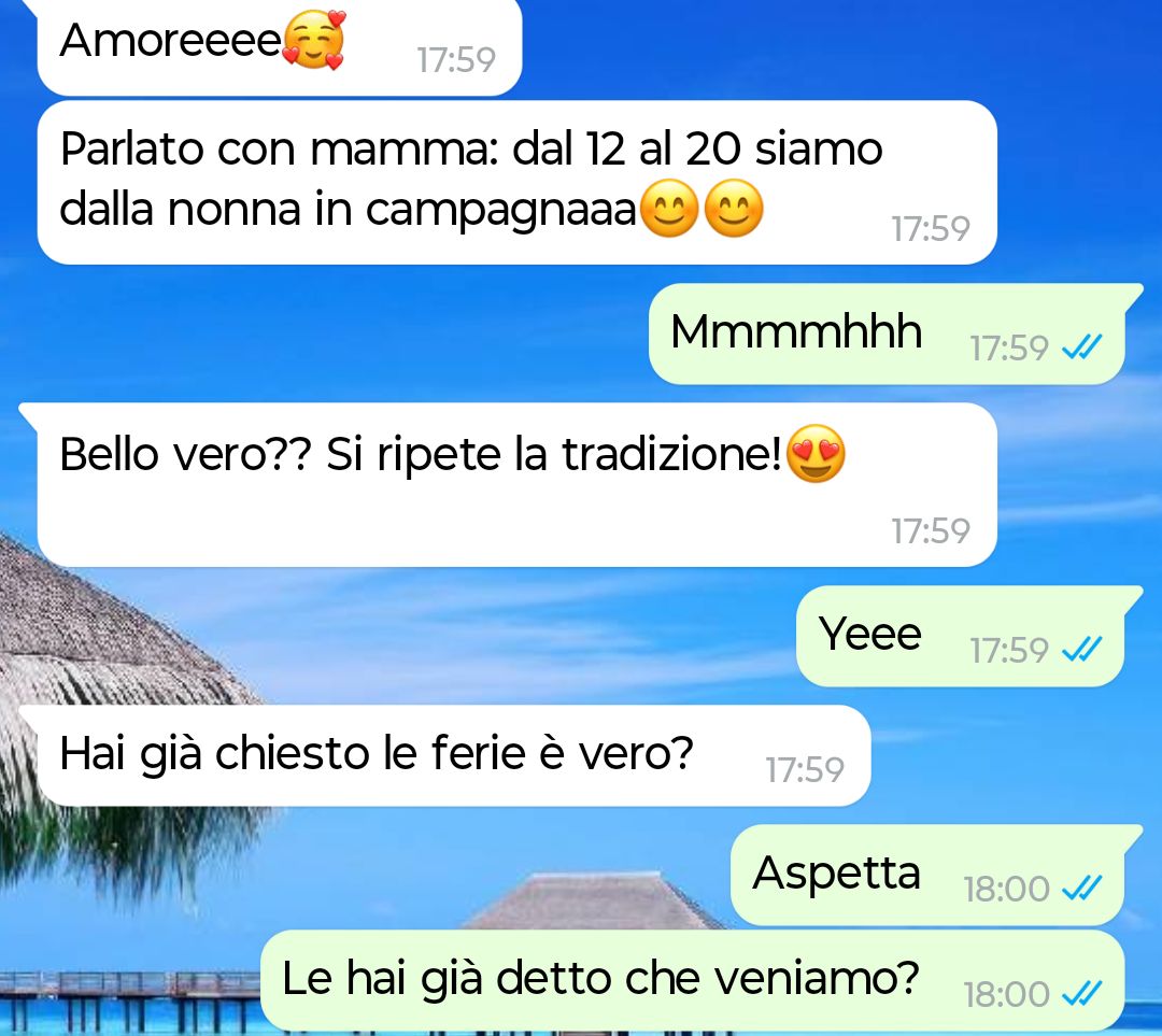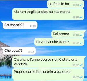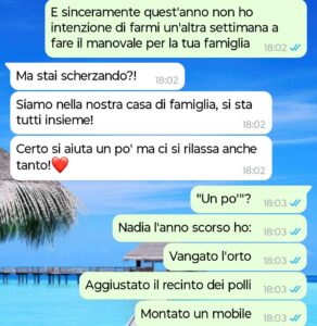 Ma io mi chiedo: è così strano desiderare che le ferie siano davvero ferie? Che ci sia anche spazio per le mie esigenze, e non solo per le sue tradizioni?