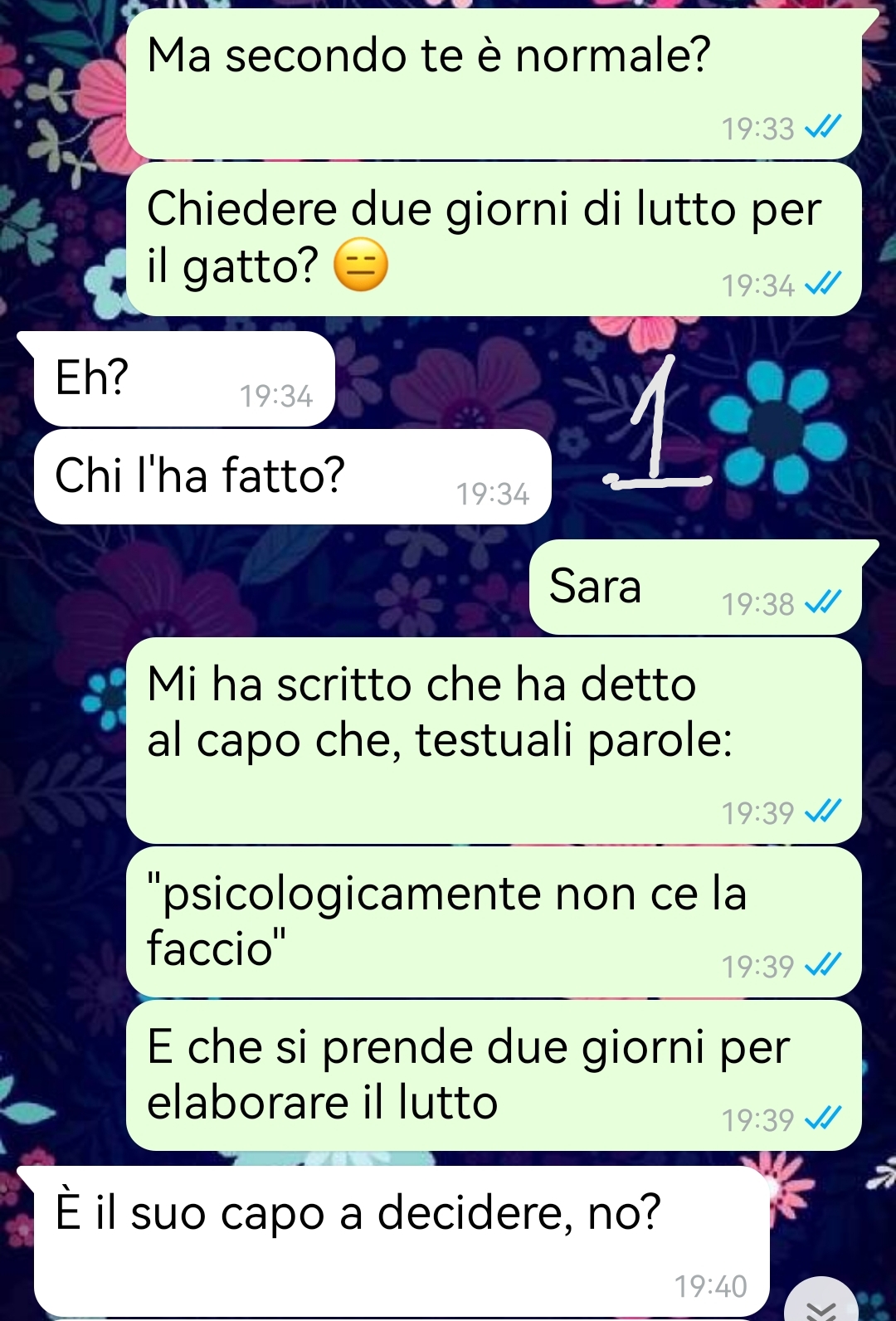 Ma quando la mia amica mi ha scritto che ha chiesto i “giorni di lutto” al lavoro per la morte del suo gatto… non ho saputo che dire.