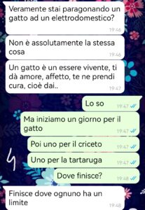 Ho avuto gatti, cani, tartarughe, e quando è morto il mio primo gatto ho pianto due giorni.