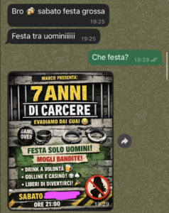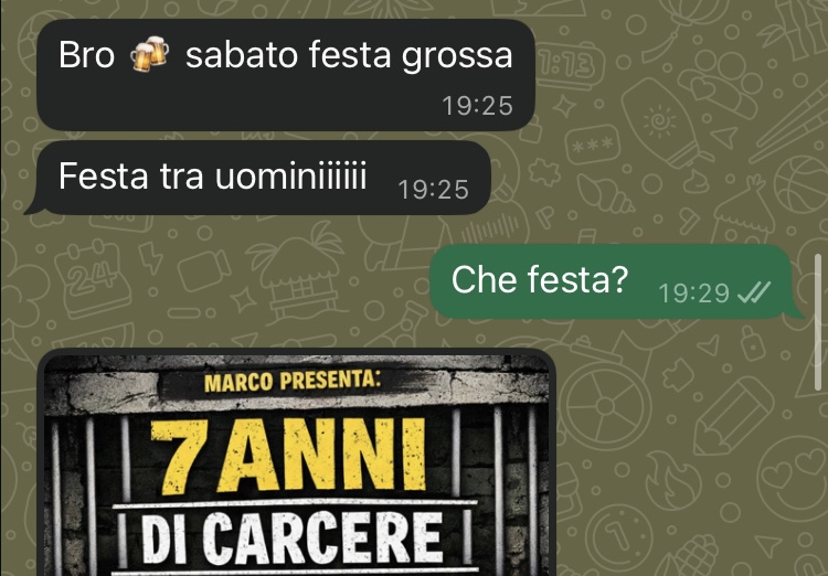 Ultimamente, però, ha preso una piega che non mi piace per niente: ha iniziato a parlare sempre male di sua moglie, che in realtà è una donna carinissima e gentilissima, che conosco da tanto tempo e ha iniziato anche a dire delle cose molto strane. L’altro giorno mi ha mandato l’invito a una festa che trovo veramente assurda e svilente per tutti gli uomini sinceramente e quindi ho deciso di dirgli la verità.