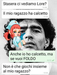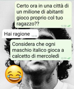come la maggior parte dei maschi italici gioco a calcetto il mercoledì. è un appuntamento settimanale guadagnato con pazienza e costanza. abbiamo un gruppo Whatsapp a cui spesso si uniscono nuove leve.