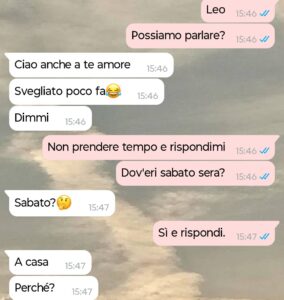 “Mi chiamo Chiara, ho 27 anni, e sto con Leonardo da due anni e mezzo. Non siamo perfetti, certo, ma ci siamo sempre trovati sulla stessa lunghezza d’onda per le cose importanti, i progetti di vita e nel farci sostegno a vicenda, momenti delicati compresi. O almeno, così pensavo.
