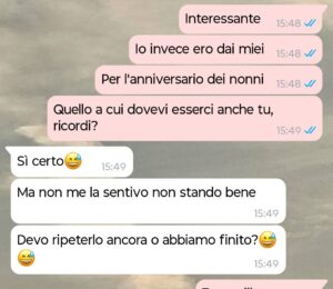 Condivido questa chat perché so che ci sono tante ragazze che, come me, si fidano. E spero che leggendo le sue risposte capiate quando fidarsi smette di essere dolce… e inizia a essere sciocco. E fare male.”