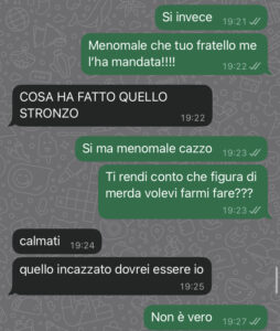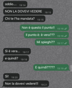 Gli ho scritto cercando di restare calma (spoiler: non ci sono riuscita), ma avevo bisogno di capire se ero io che stavo esagerando o se davvero c’era qualcosa di profondamente sbagliato in tutta questa situazione. Lui ha reagito malissimo…