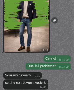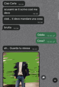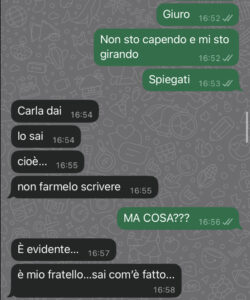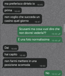 E prima ancora di spiegarmi perché me la stava mandando, mi scrive una cosa tipo “scusami se te la mando, so che non dovresti vederla, ma preferisco dirtelo io”.