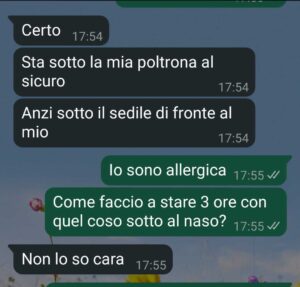 è normale che un allergene così potente possa salire a bordo di un aereo?? Sentite cosa ha in mente di fare questa mia presunta amica. Sentite come lo tratta sto animale pieno di allergeni.