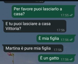Dobbiamo prendere un volo insieme per una vacanza con le nostre reciproche famiglie. Ci saranno anche altri amici. Ovviamente ognuno di noi si porta il marito e i figli. Ma lei??? Lei si porta il gatto, un essere infido e che mi causa un sacco di malessere. Non mi piaciono i gatti. So che sarò impopolare ma io li trovo malsani e per me sono sinonimo di veleno. Dovrebbe essere proibito portarli in strutture alberghiere e in voli dove ci sono un sacco di altre persone. Ho letto che ryanair non lo permette e lo credo bene. Poi si devono assumere loro il rischio di una persona che sta male e poi si atterra allegramente prima che ne dite??