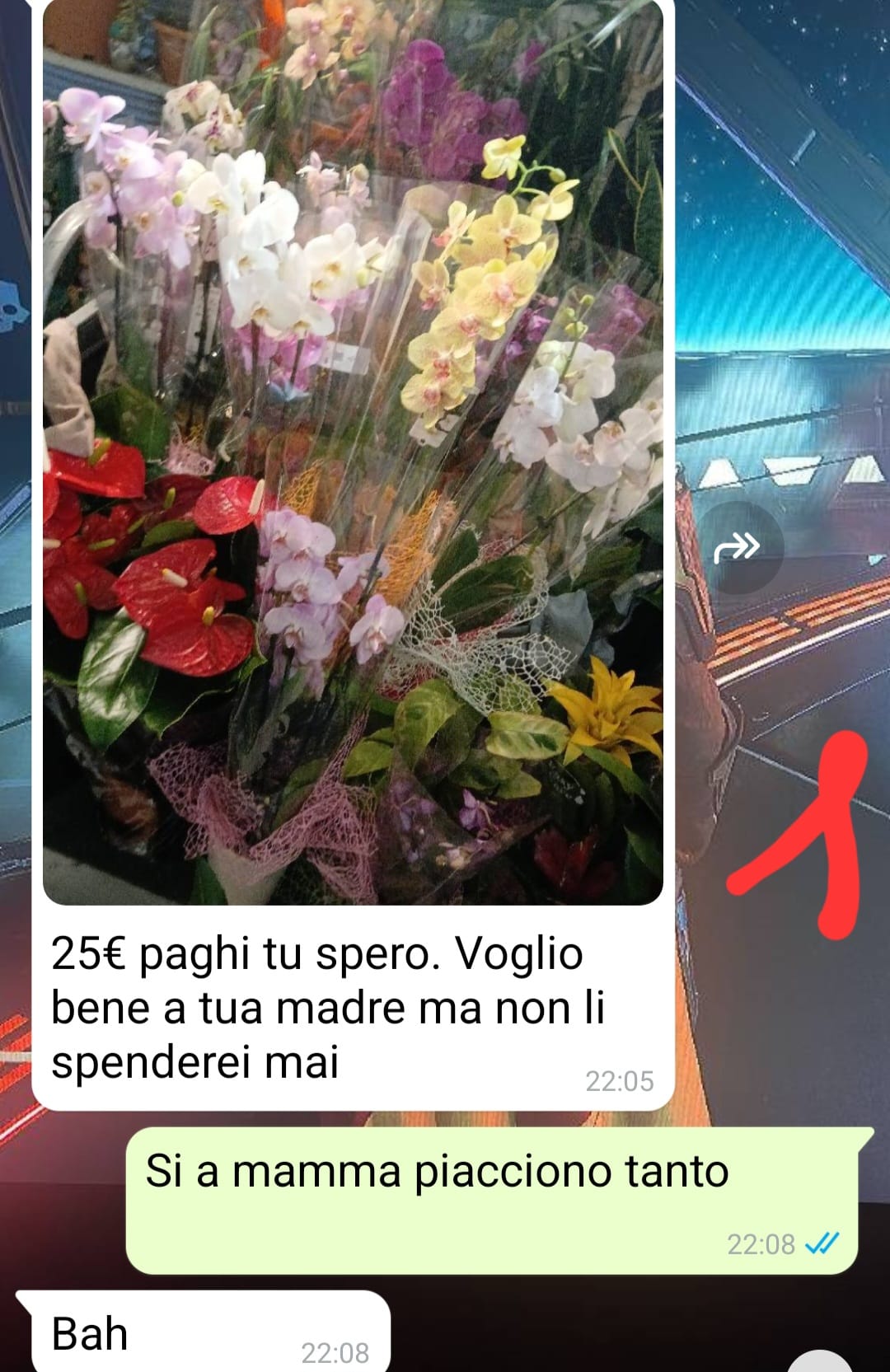 “Ciao a tutti, sono un ragazzo di 27 anni e ho appena lasciato la mia fidanzata dopo la conversazione whatsapp che vi allego (e anche una sonora litigata venuta dopo). Magari leggendo non vi sembrerà che ci sia nulla di veramente grave ma quello che ho percepito nei suoi messaggi e poi nelle sue parole, mi hanno dato proprio l’idea di un’enorme red flag. Non c’era assolutamente nessuna tensione tra noi prima dell’inizio di questa conversazione. Ero a casa di mia madre per il suo compleanno e la mia ragazza si era offerta di prendere per lei una pianta. I fiorai a Roma sono aperti sempre e quindi le ho detto di passarci direttamente prima di venire a casa. Forse ho sbagliato a non farlo io, ma comunque lei non mi ha mai detto di non volerlo fare. Fino ad allora credevo che con mia madre non avesse problemi  e che le volesse bene…invece, un messaggio alla volta, ho percepito una sorta di gelosia che per me è stata assurda. Io sono fatto così, per me queste cose sono inconcepibili…ho percepito una violenza nel suo modo di fare che non capisco. Ripeto, posso aver sbagliato io a non andare a comprare la pianta…ma reagire così mi sembra eccessivo…”
