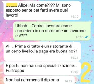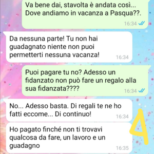 Mando la chat per chiedere chi secondo voi ha ragione e se un fidanzato abbia il diritto di comportarsi così…cioè è assurdo!”