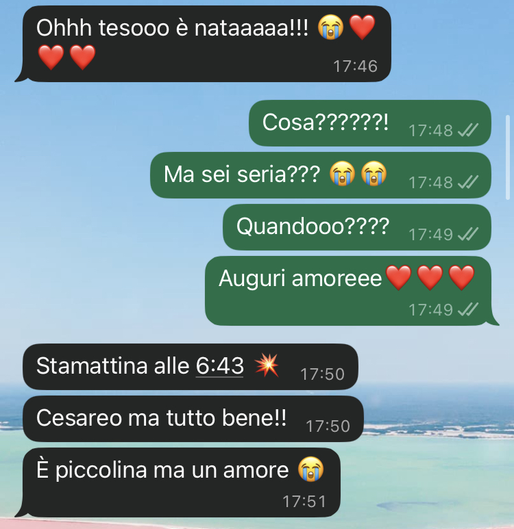 Ci mandavamo le foto delle ecografie, i video dei calci nella pancia, ci confrontavamo su tutto: nausea, paure, nomi, sogni, ansie.