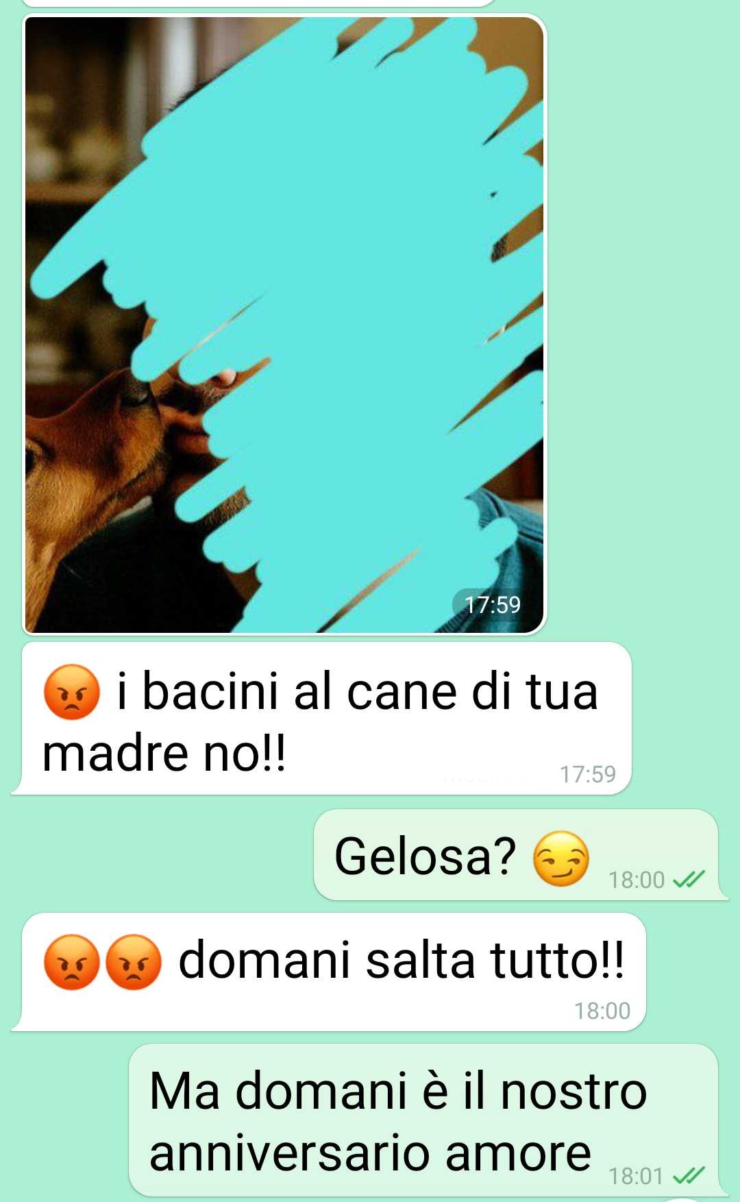 “La mia ragazza si è arrabbiata perché ho dato dei baci al cane di mia madre. Lascio a voi ogni commento.