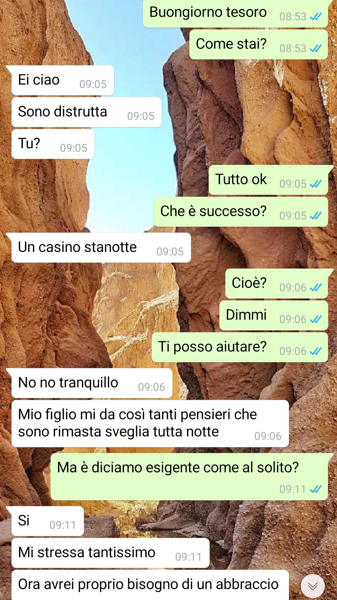 Forse sono stato troppo cattivo con lei, non dovevo immischiarmi tra lei e i suoi figli, ma a un certo punto non ce l’ho fatta più. Lei si chiama Cinzia, ha 48 anni ed è una persona fantastica con la quale mi sono trovato subito benissimo, al punto da pensare di aver trovato quella giusta.