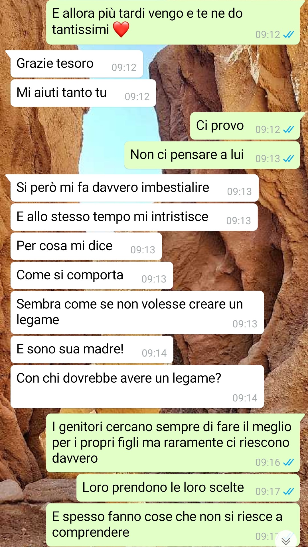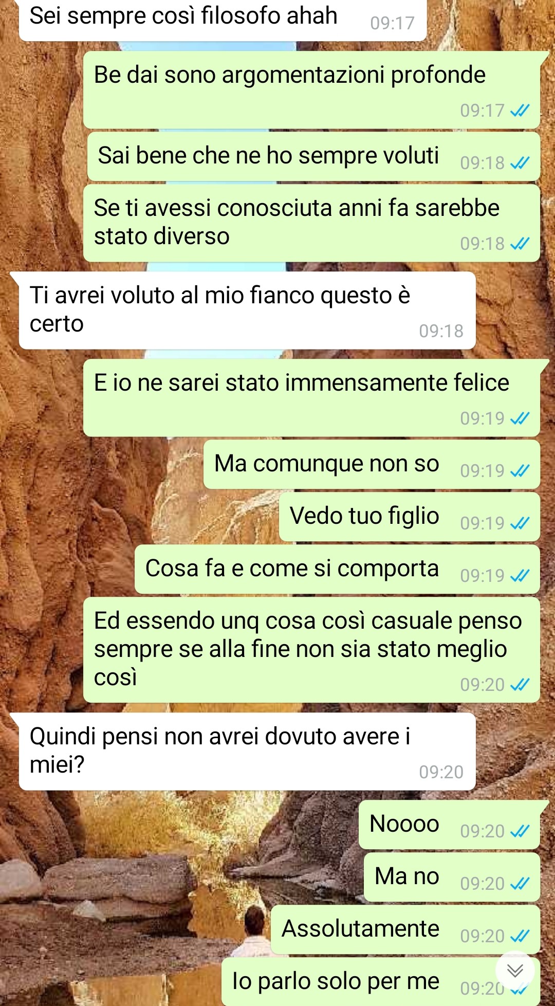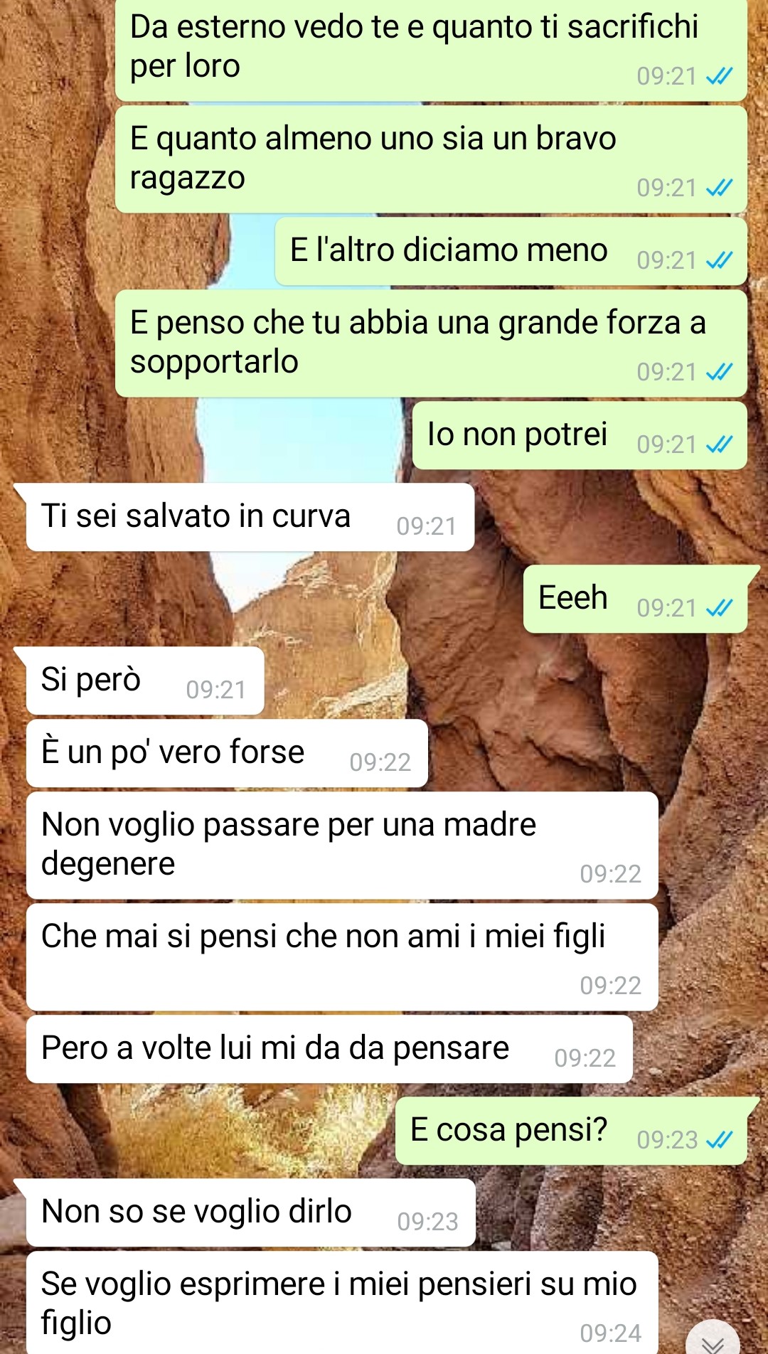 Il più grande l’ha avuto da giovanissimo, si chiama Gianmarco e ha 30 anni, l’altro invece è un ragazzo d’oro, un vero esempio per chiunque e l’ha avuto un po’ più grande dato che lui invece ha 22 anni, quasi 23. Tutto è iniziato quando lo scorso fine settimana uno dei due ragazzi l’ha fatta impazzire e ho voluto farla sfogare e darle un po’ di supporto, volendole dire la mia sulla situazione per poterla aiutare senza intromettermi troppo, cosa impossibile arrivati alla fine. Pensate che dovessi evitare di parlare o ho fatto bene a dire le cose come stanno?”