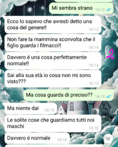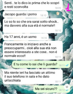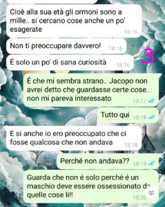 Da un certo punto di vista mi fa tenerezza: perché finge sempre di non fare differenza tra i ragazzi.. finché non succede qualcosa che lo mette davanti alla cruda realtà e lo manda in confusione! Ad esempio ieri ha sbirciato nel telefono di uno dei ragazzi – noi abbiamo il codice per sbloccarli – e ha trovato dei film particolari..”