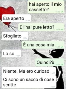 “Ci sono cose che sembrano innocue. Una copertina colorata, qualche frase appuntata a penna, una pagina scritta di getto nei ritagli di tempo. Cose che fanno bene a chi le scrive, ma che possono fare male a chi le legge. La mia agenda era lì, nel cassetto. Non nascosta, ma nemmeno in bella vista. Qualcuno ha deciso di aprirla. Di leggerla. Si tratta del mio compagno, Stefano. E ha trovato i miei “momenti belli”. Non erano segreti. Erano miei. Non c’erano nomi. Non c’erano storie. Solo sensazioni: un pomeriggio di pioggia, il profumo del bucato, un tè caldo mentre fuori fa freddo. Eppure bastato questo per far partire una tempesta. Certe persone si aspettano di trovarsi sempre al centro del tuo mondo. Se non lo scrivi nero su bianco, pensano di non esserci affatto. Non conoscevo questo suo lato emotivo. Io ho provato a spiegare. A dire che le cose belle sono anche le più semplici. Ma non è bastato. Lui ha lasciato un post-it. Poi ha smesso di rispondere. E non è più tornato a casa.”