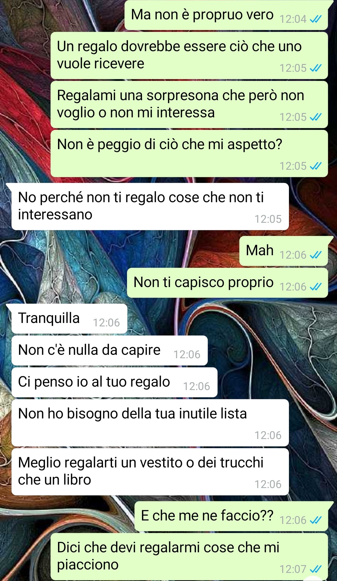 Leggi le ultime storie Lista regali di Natale Natale a pagamento – Finale Problemi con la privacy Il video Scelte difficili Il mio compagno Leonardo non conteso Il dilemma della sorella Un viaggio vano Bugia bianca Disorganizzazione La consumazione Outfit per il matrimonio Lui è fuggito dalla finestra La videochiamata Il tradito seriale La colf Sparizione Non è come sembra Serie B