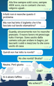 “Ho deciso di mandarvi questa chat perché ho bisogno di capire se sto impazzendo io o se la gente fuori è fuori di testa. Condividere un appartamento non è mai facile. Ci sono i turni delle pulizie che saltano, i piatti nel lavandino, i ritmi di vita diversi. Ma finché c’è buonsenso, si sopravvive. Io e il mio coinquilino dividiamo questo trilocale mesi. Eravamo partiti benissimo: regole chiare, spese spaccate al centesimo, 50 e 50 su tutto, dall’affitto alle bollette. Sembrava la convivenza perfetta, quasi un’amicizia. Poi, qualche settimana fa, la mia vita lavorativa è cambiata: ho avuto la fortuna di trovare un lavoro che finalmente mi rendesse giustizia. Pensavo fosse una svolta fantastica per me e del tutto ininfluente per lui. Mi sbagliavo di grosso. Ho scoperto sulla mia pelle che quando entrano in gioco i soldi, le persone perdono la ragione. Si iniziano a fare calcoli meschini e a pesare perfino l’aria che respiri dentro casa. Quello che state per leggere è il delirio totale che mi è piombato qualche giorno fa su WhatsApp. Ditemi voi se è normale.”