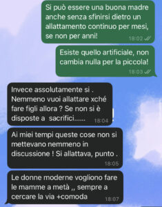 “Ciao a tutta la community di spunte blu, sono sposata con Antonio da quattro anni e stiamo per diventare genitori di una bimba. Una bimba che abbiamo tanto cercato e voluto. Sono all’ottavo mese e siamo molto emozionati. Siamo due persone moderne e ci dividiamo tutto alla pari, in casa e fuori. Ognuno fa il suo 50%, non ci si “aiuta” in casa, si collabora alla pari, appunto. E così abbiamo intenzione di fare con nostra figlia. La gravidanza e il parto me li sorbisco io… per ovvi motivi… ma dalla nascita in poi vogliamo la parità anche in quello, e ciò implica delle scelte. Ad esempio mio marito è passato ad essere un libero professionista a partita iva per gestirsi meglio, visto il ridicolo congedo parentale che abbiamo in Italia. Comunque, questo implica tante scelte da fare in vista della nascita della piccola. Ecco… mia suocera ne ha scoperta una con cui non è per niente d’accordo. In generale mi sta veramente addosso, la piccola non è ancora nata e già mi tormenta di messaggi come “non fare questo, fai quello” e io non ne posso più! Né di lei né delle sue idee retrograde! AIUTO. Vi sembra normale arrabbiarsi come ha fatto lei, per una cosa del genere???